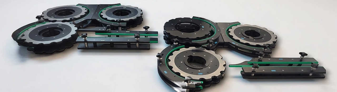 Rilevamento in opera e sviluppo dell’attrezzatura di qualsiasi formato per etichettatrice da 500 pz/h a 30000 pz/h, cambi formati completi di mandrini, mozzi di fissaggio e accessori.